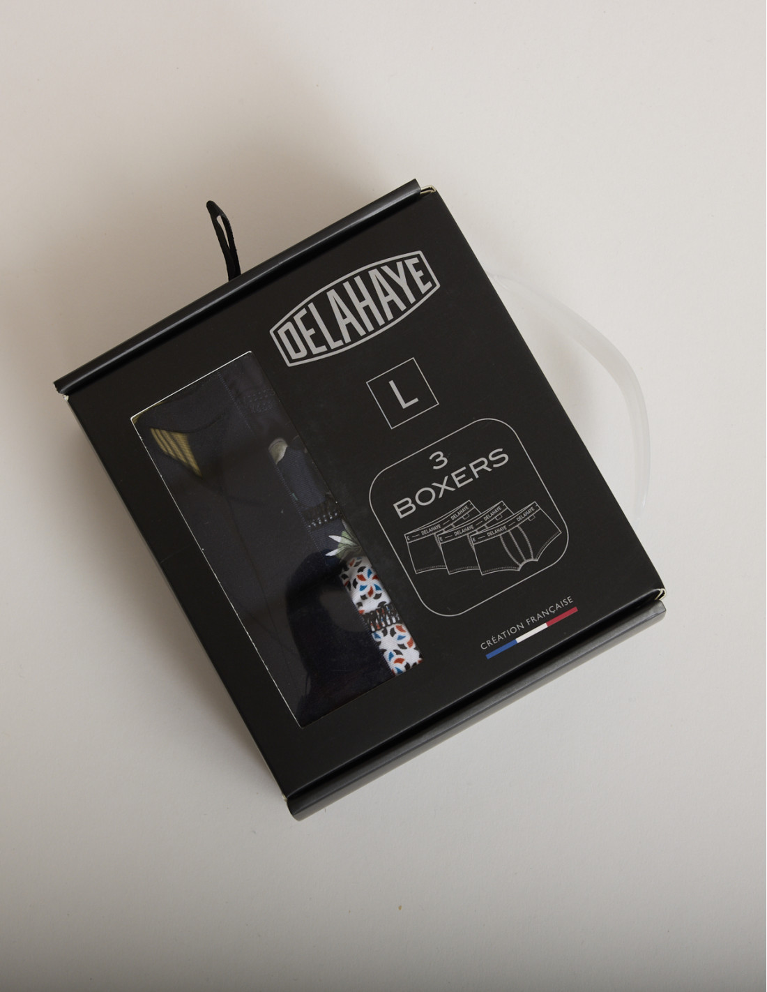 Con este lote de boxers DELAHAYE, eliges unos boxers para hombre de algodón de alta gama, inspirados en el mundo del automóvil y diseñados para combinar comodidad duradera, estilo y libertad de movimiento.
