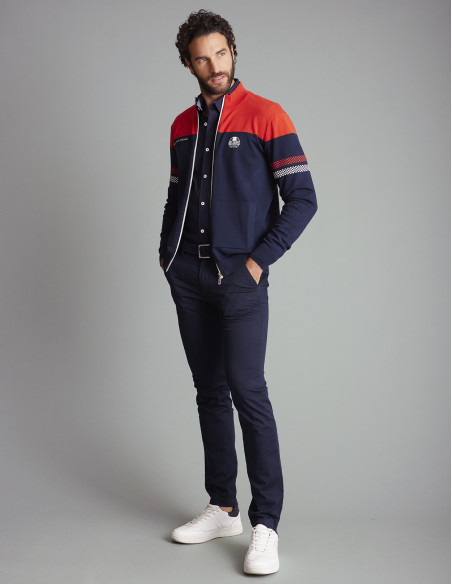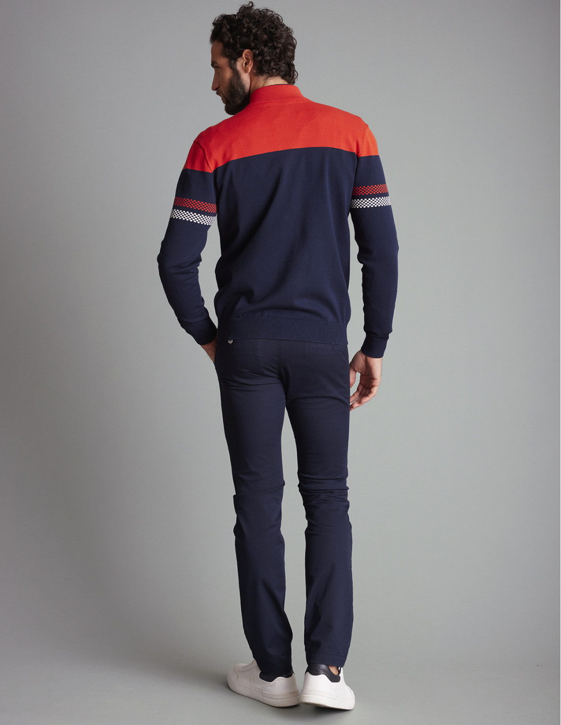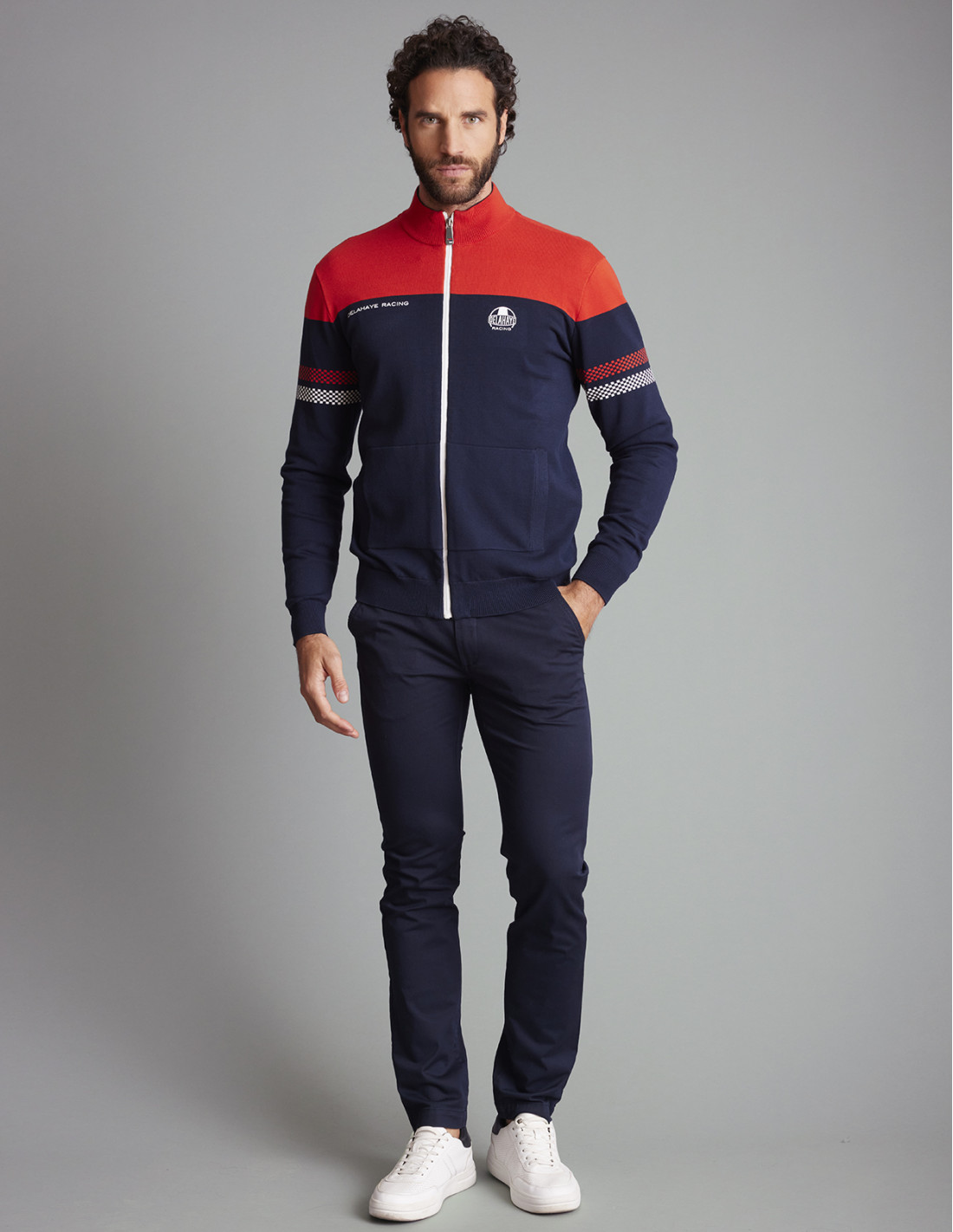 El chaleco GENOVESE encarna el espíritu racing con sus bandas contrastadas y sus cuidados acabados, para un look deportivo y elegante.