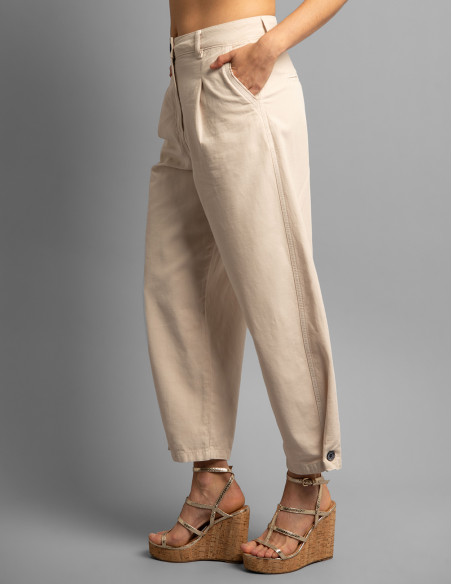 Descubre los pantalones PRECONIL «Crème», la prenda de moda de tu armario veraniego. Son perfectos para lucir un look elegante y cómodo bajo el sol. Combínalos con unos tacones o unas sandalias para conseguir un estilo aún más moderno.
