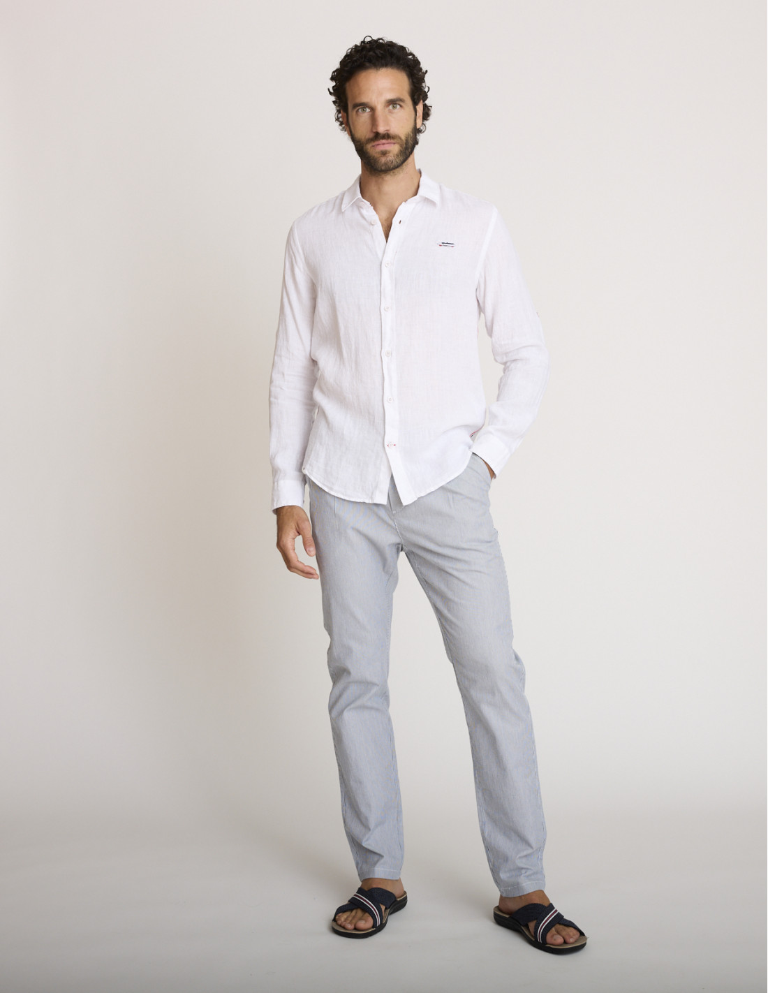 Confeccionados en algodón ligero y transpirable, estos pantalones para hombre garantizan una comodidad ideal para la temporada, al tiempo que mantienen un aspecto impecable. Su corte cuidado acompaña naturalmente los movimientos, perfecto para pasar un día en la ciudad o una escapada por carretera con la misma facilidad.