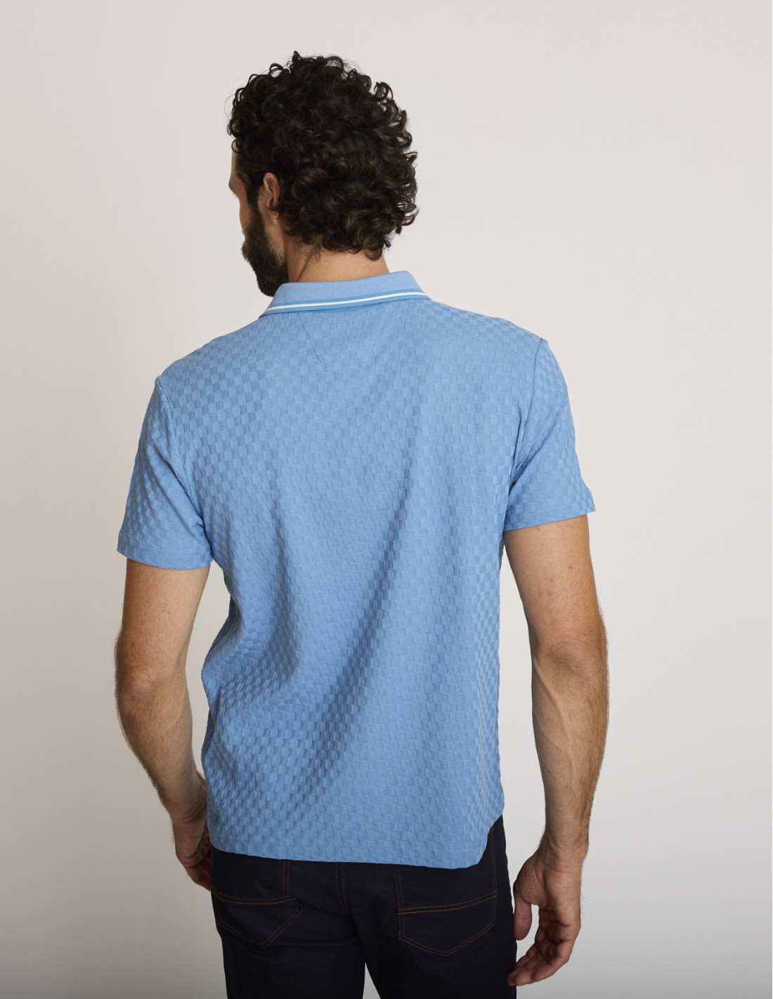 Polo con efecto damero azul celeste LONOTIS