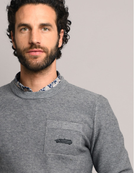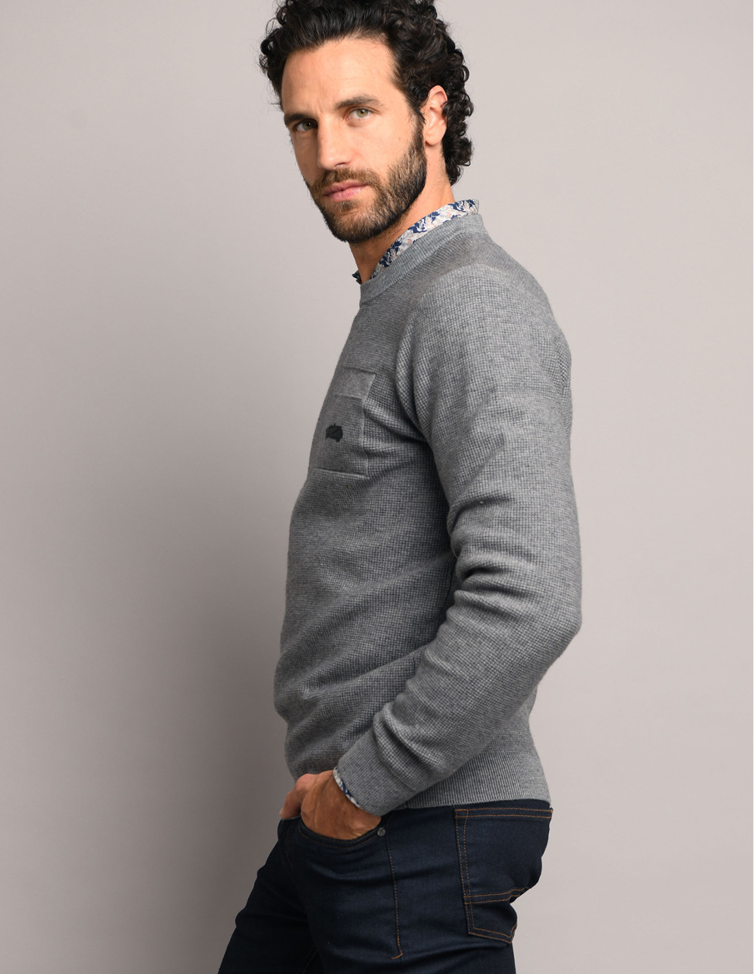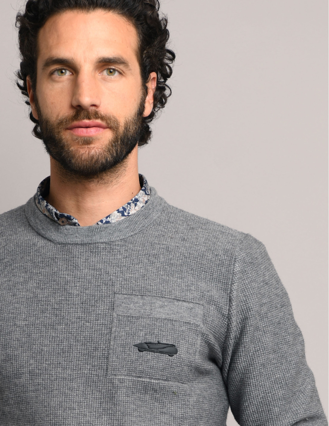 Découvrez le pull gris chiné de DRIVER CITY, alliant élégance et raffinement pour un style urbain sophistiqué. Fabriqué dans un tissu de haute qualité, son design épuré est sublimé par une poche discrète et une coupe soignée.