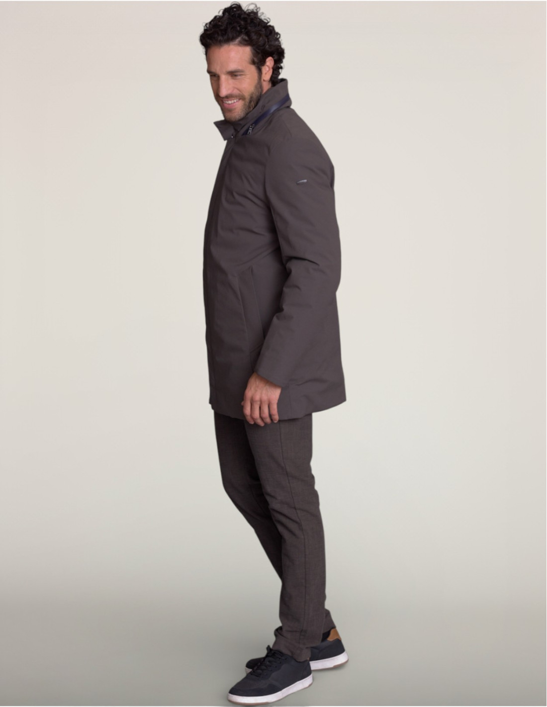 Le coloris écorce urbain apporte une sophistication contemporaine. Le col montant et la coupe longue offrent protection et élégance, signature de la collection Driver City. Les finitions soignées reflètent l'alliance entre esprit automobile et raffinement urbain moderne.
