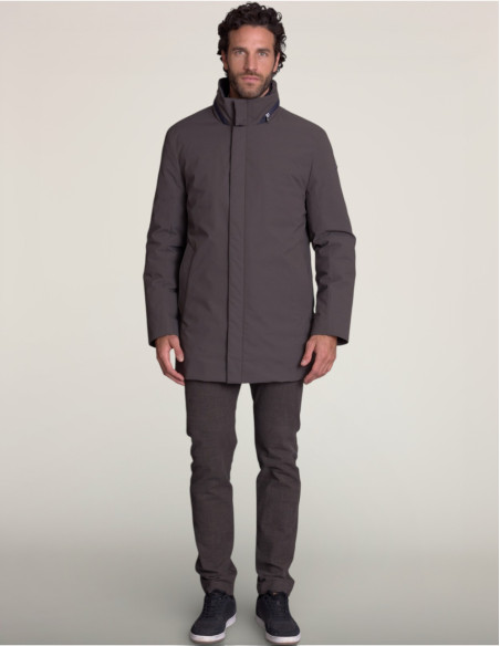 La veste KARELLIS écorce marie l'esprit urbain et l'élégance automobile moderne. Sa coupe longue et son design contemporain avec Sorona® en font une pièce signature pour un look urbain raffiné et distingué.