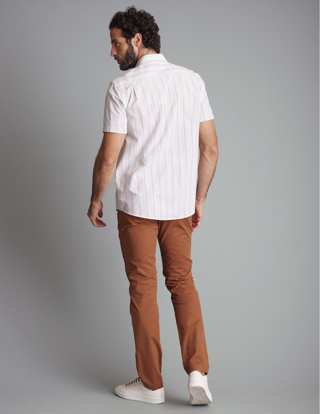 La chemise CALCATOGGIO est un incontournable du vestiaire masculin. Avec sa coupe moderne et son tissu léger à rayures, elle vous accompagne aussi bien au quotidien que lors de vos sorties estivales. Le mannequin porte une taille L.