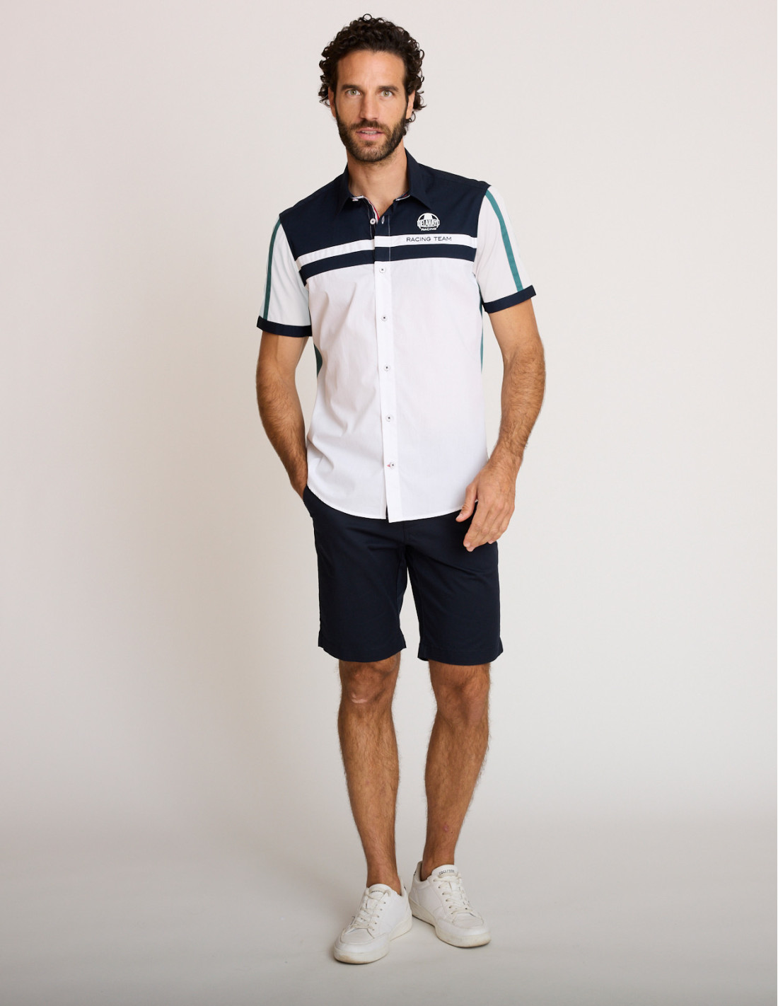 Issue de la collection Racing, cette chemise d'été se distingue par ses codes graphiques inspirés du sport automobile : empiècements contrastés, marquages Racing Team et détails soignés qui rappellent l'univers des circuits.