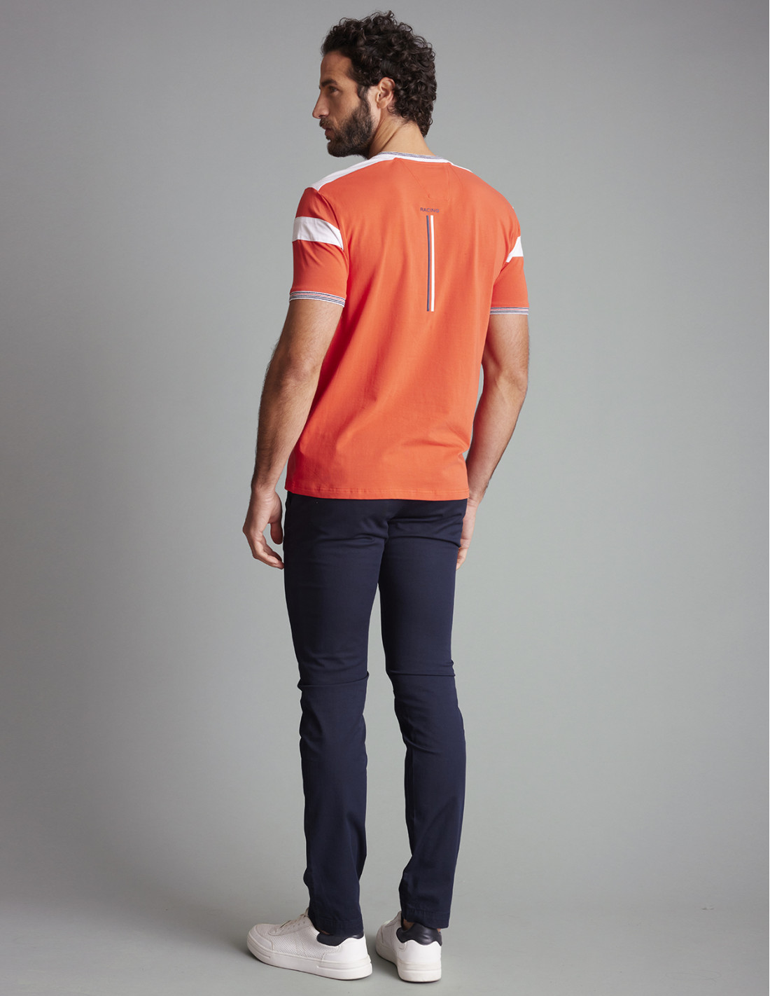 Tee-shirt LUCCIANA en coton, à col boutonné et bandes contrastées sur la poitrine et les manches. Il est disponible en blanc et en braise.