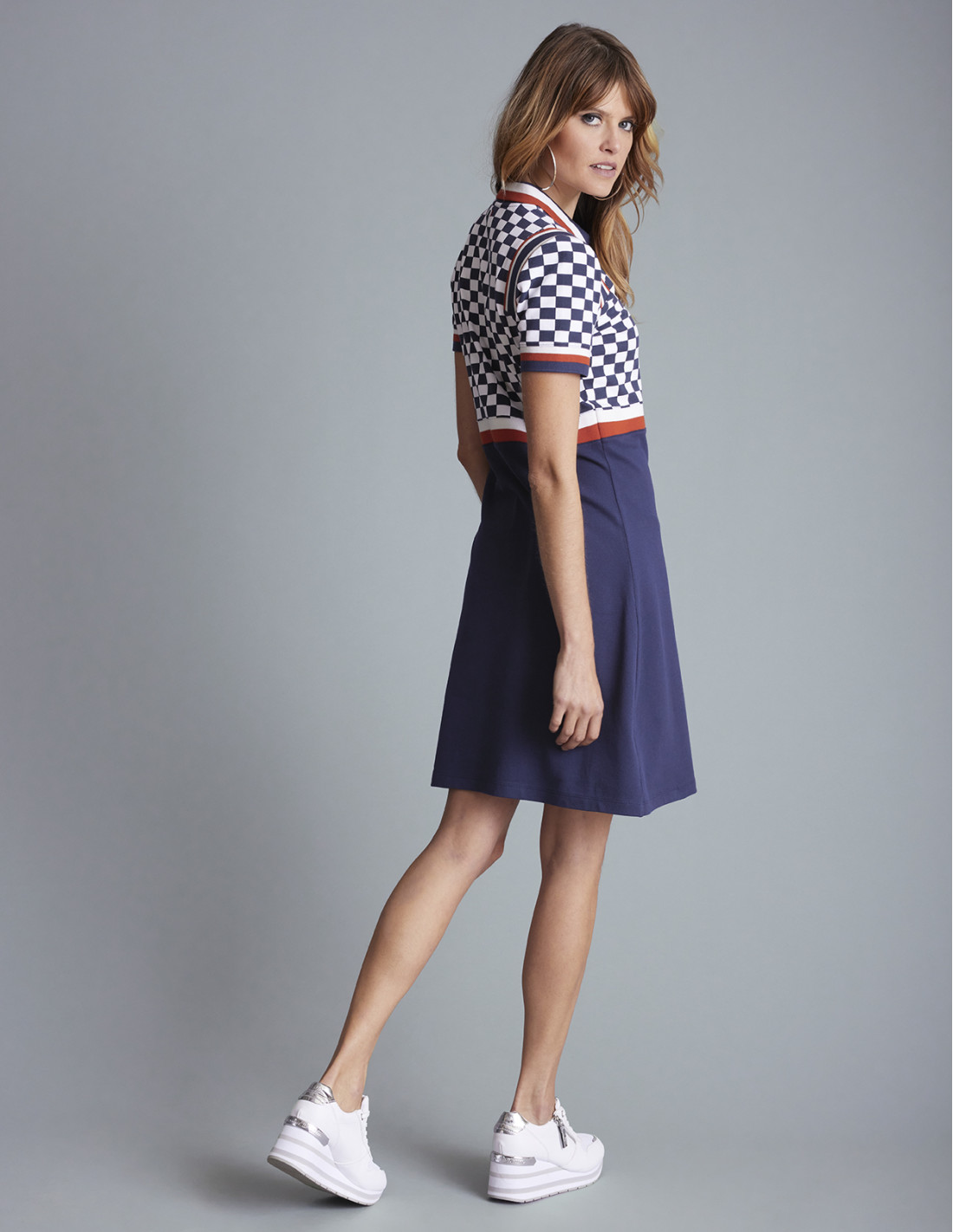 L'abito RIBOIRE è un capo audace e sportivo del guardaroba femminile. Con il suo design ispirato al mondo dell'automobile e la sua stampa a scacchi, unisce comfort e dinamismo per un look unico. Ideale per un look chic e casual, da indossare con sneakers o sandali.