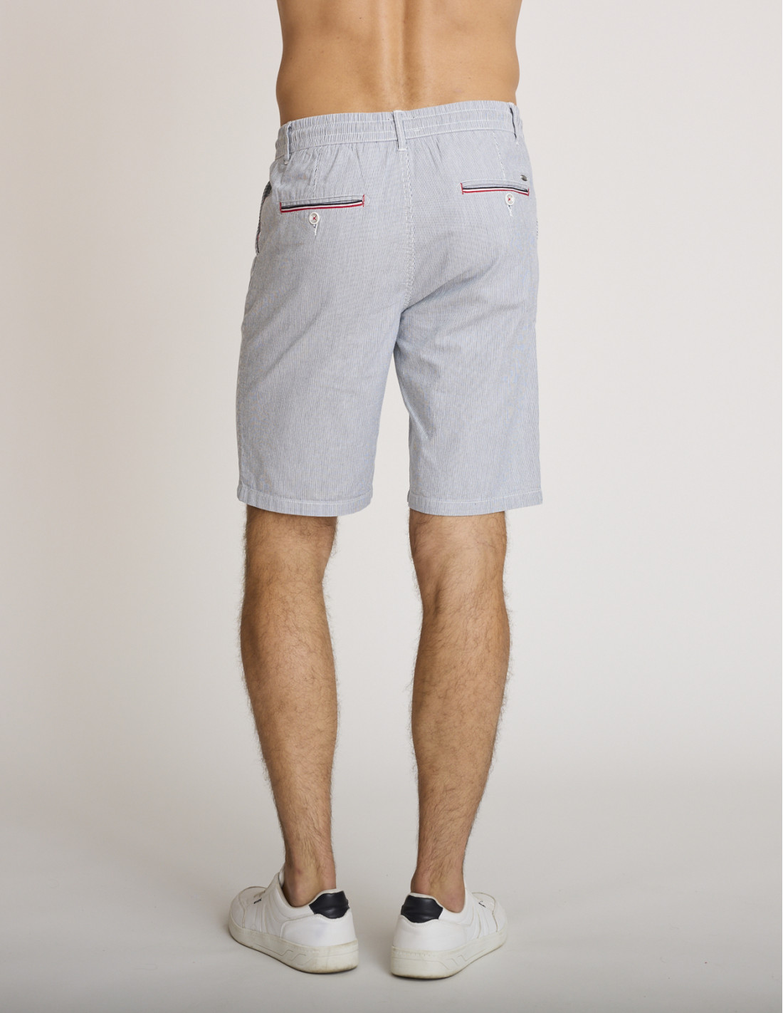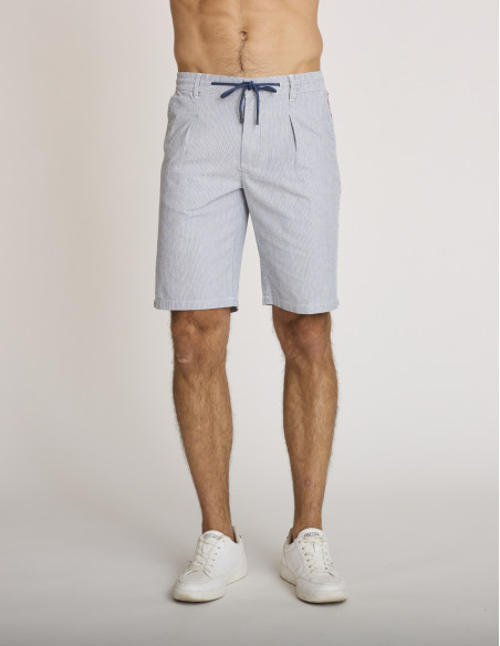 Un bermuda a righe blu e bianche indispensabile per un look estivo premium firmato DELAHAYE.