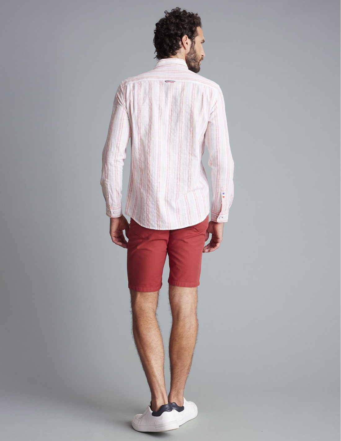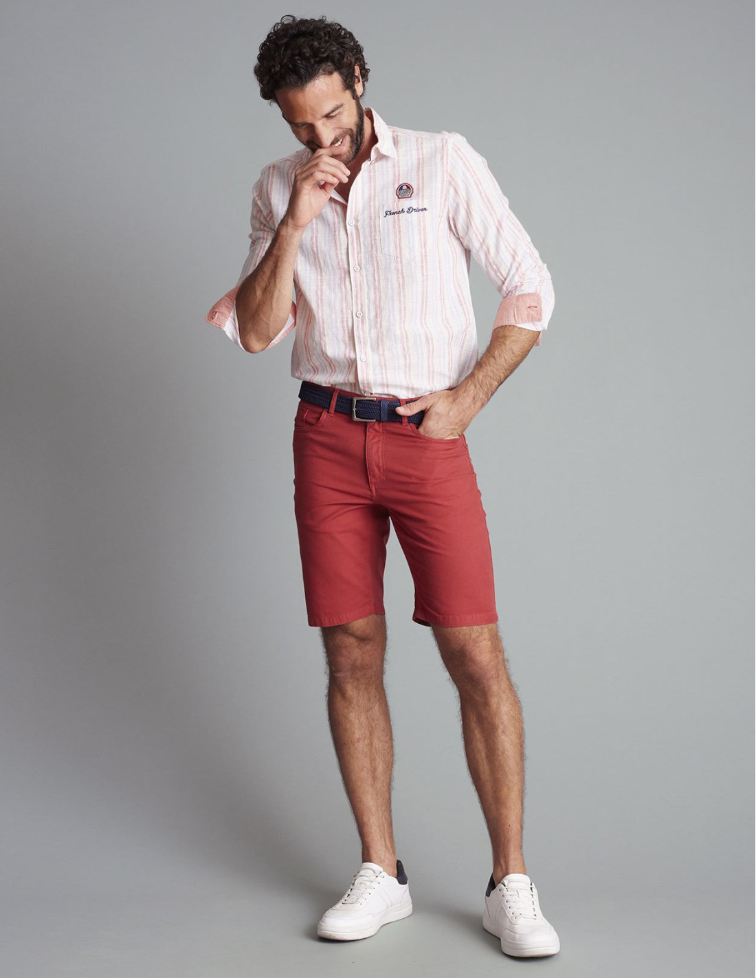 Adoptez un style estival et raffiné avec la chemise CALAROSSA. Légère et respirante, elle séduit par son tissu texturé à rayures subtiles et ses broderies inspirées de l’univers automobile. Parfaite pour une allure décontractée tout en restant élégante.