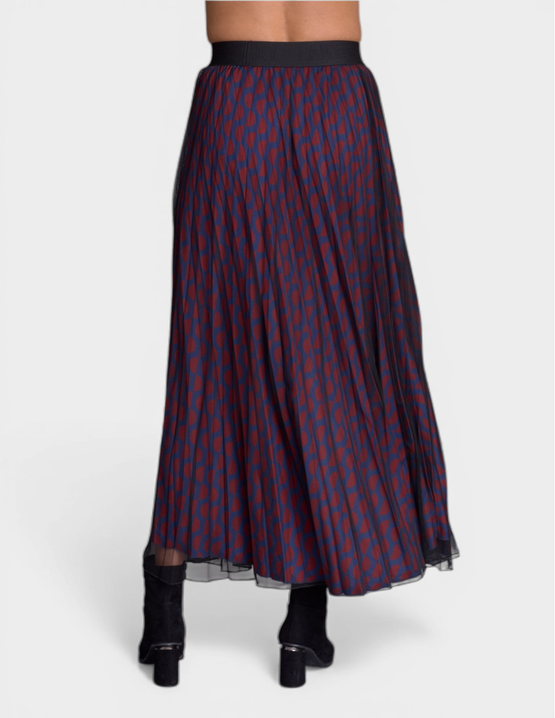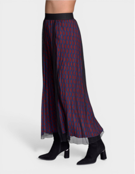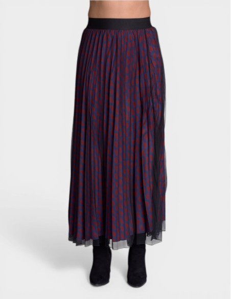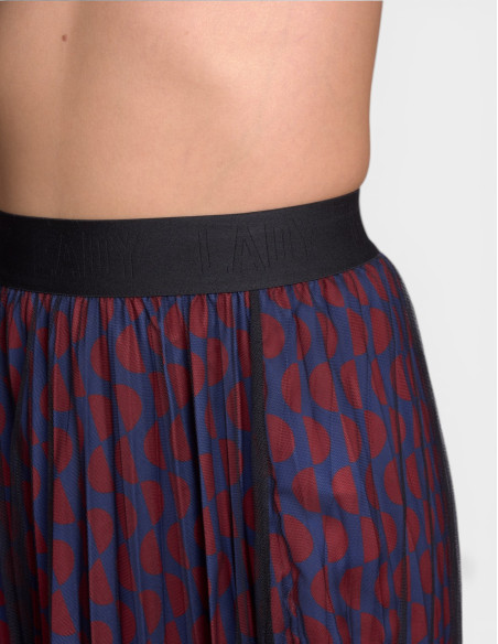 Découvrez notre jupe femme JOUX, pièce phare de la mode française Lady DELAHAYE. Cette jupe plissée bleu nuit avec imprimé géométrique rouge de la collection Racing s'inspire de l'univers automobile français pour créer un look fluide et raffiné parfait pour la femme active d'aujourd'hui.