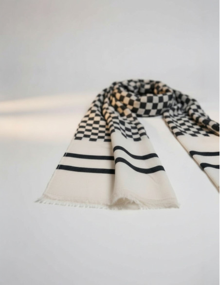 Affermate il vostro stile con il foulard ALBE, un elegante omaggio alle leggendarie bandiere a scacchi dell'automobilismo. Il suo design raffinato e la sua leggerezza lo rendono un accessorio perfetto per completare un outfit con distinzione.