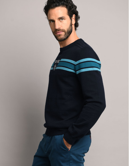 Scopri il maglione DELAHAYE RACING in colore blu navy, perfetta fusione tra eleganza urbana e spirito sportivo-chic. Impreziosito da strisce grafiche blu e dall'iconico motivo "Driver", incarna lo stile dinamico ispirato alle corse automobilistiche.