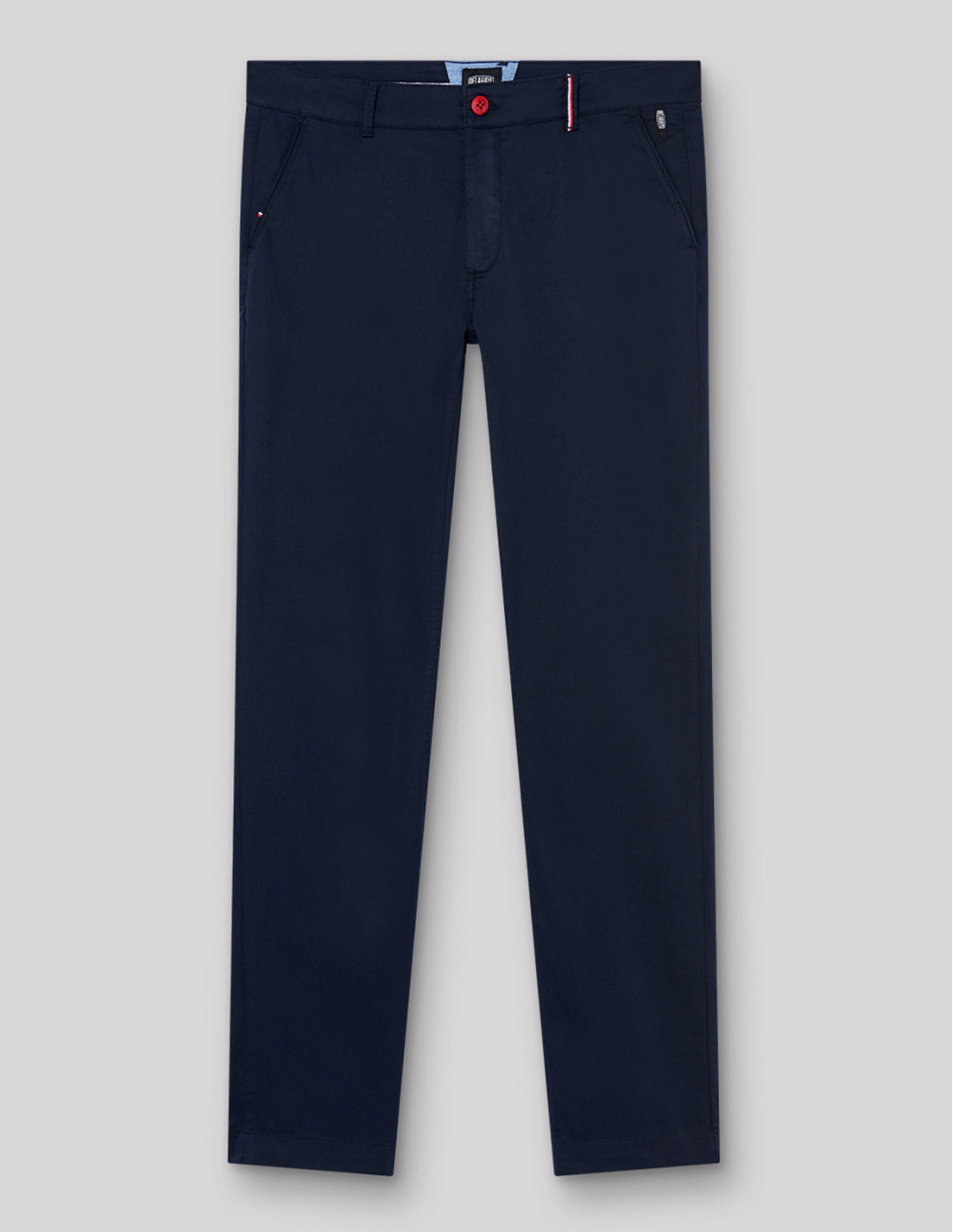 Le pantalon PARULINE marine combine l'esprit sportif Racing avec le confort d'un chino moderne. Sa coupe épurée et son coloris intemporel en font une pièce essentielle du vestiaire masculin.