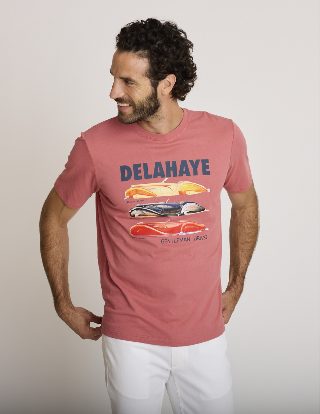 Questa T-shirt DELAHAYE rosa amaranto si distingue per il suo approccio elegante e audace all'abbigliamento automobilistico. La stampa rende omaggio alle linee iconiche delle auto d'epoca in uno spirito Gentleman Driver affermato.