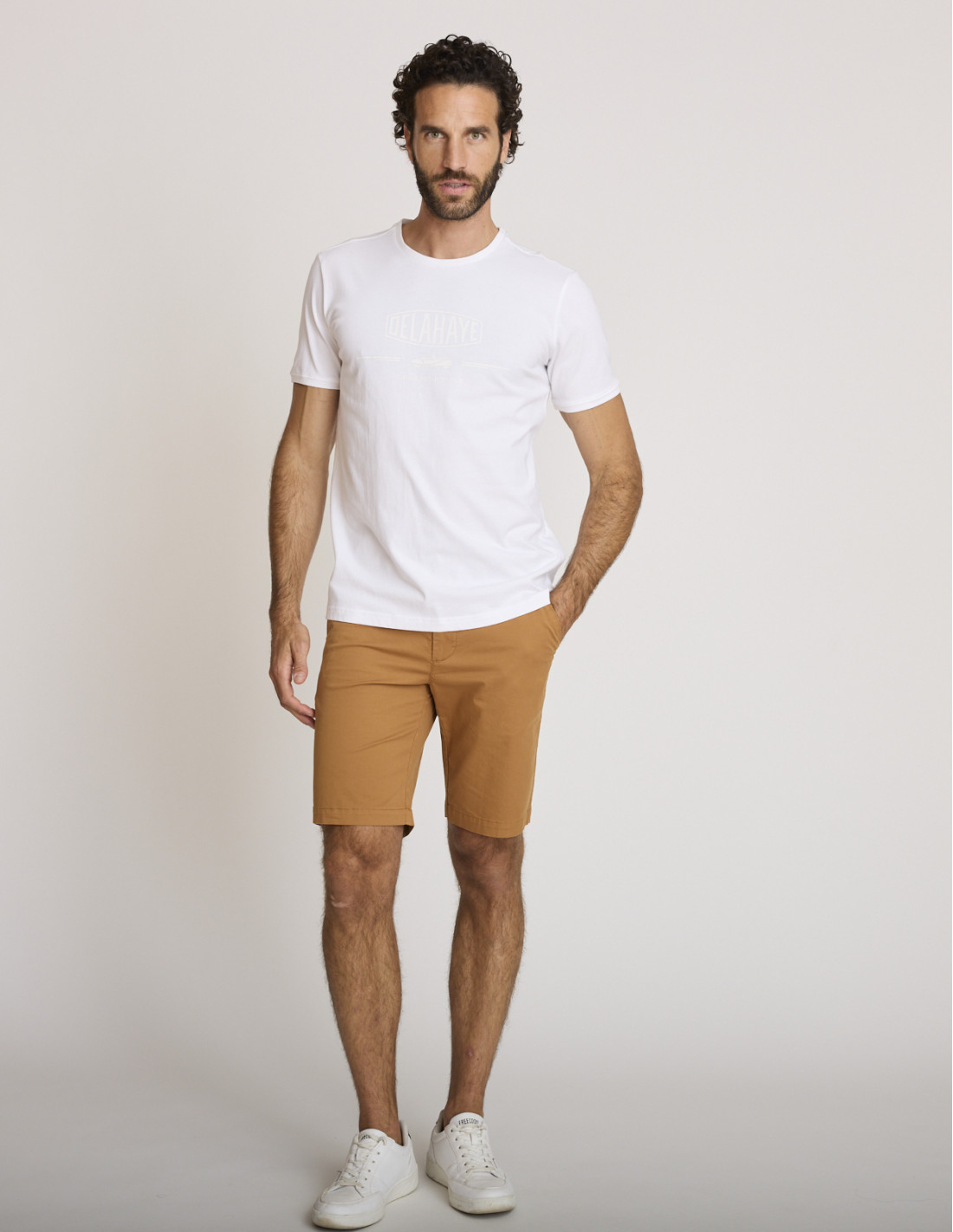 Questa t-shirt da uomo è realizzata in cotone morbido e traspirante, che offre un comfort duraturo per tutta la giornata. Il suo taglio preciso assicura una vestibilità impeccabile senza costrizioni, mentre la discreta stampa DELAHAYE tono su tono conferisce un'identità raffinata, fedele allo spirito Gentleman Driver.