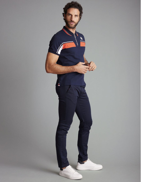 Mostra un look sportivo e deciso con la polo LACRIQUE. Ispirata al mondo delle corse, si distingue per i suoi inserti a contrasto, le strisce grafiche e la zip iconica. Realizzata in piqué di cotone, offre comfort ed eleganza per un look dinamico e moderno.