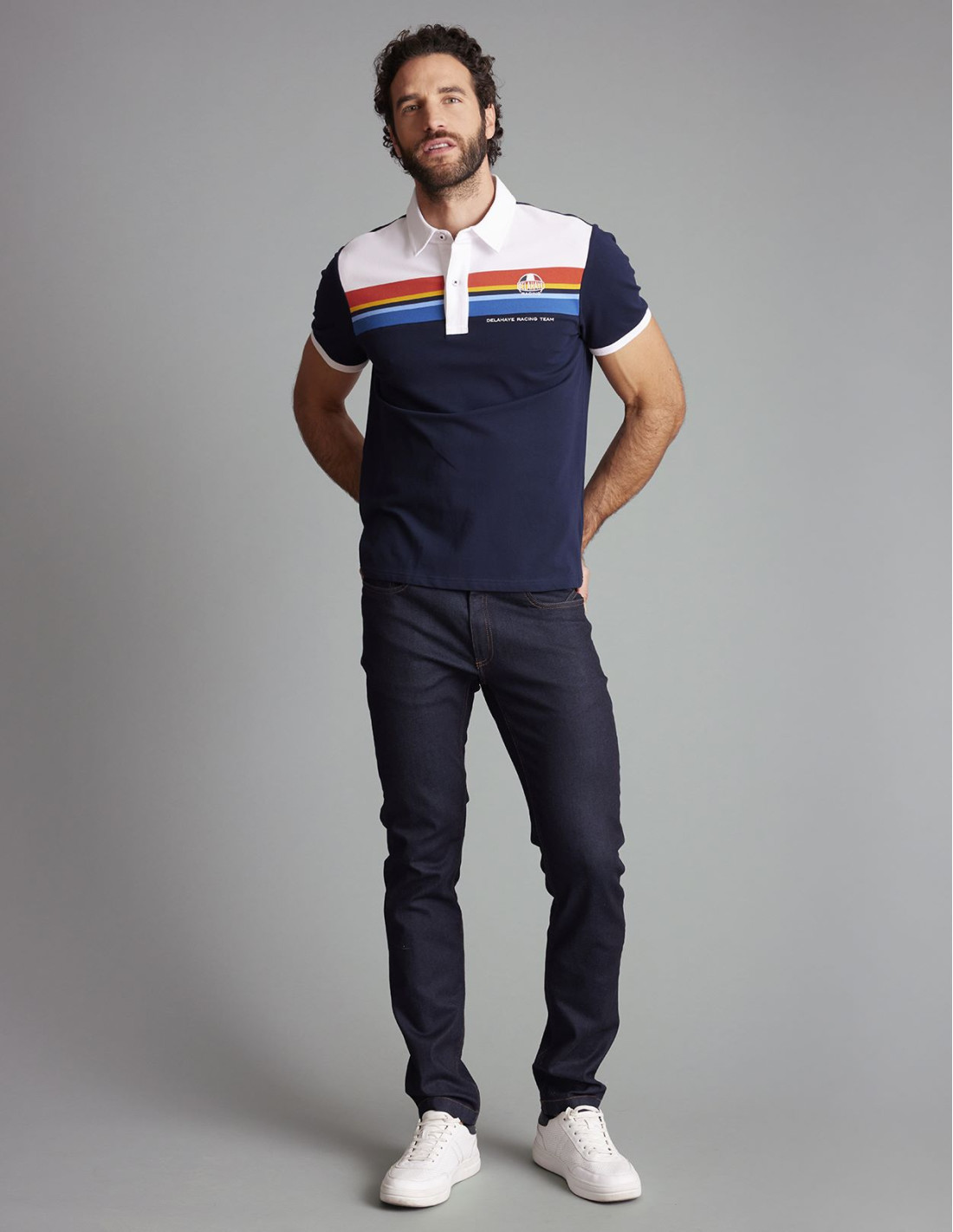 Affichez un style rétro-sportif avec le polo LAFONTAINE. Inspiré de l’univers du racing, il se distingue par son col contrasté et ses bandes colorées qui rappellent l’énergie des circuits légendaires. Conçu en coton piqué, il allie confort et élégance pour un look dynamique et moderne.