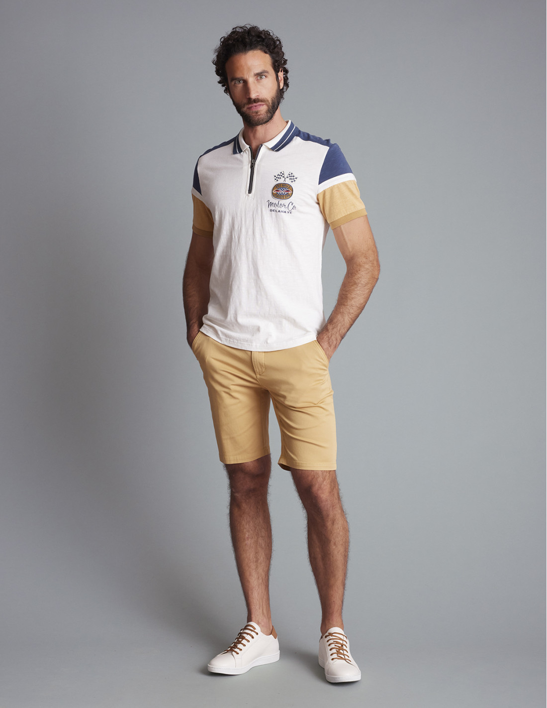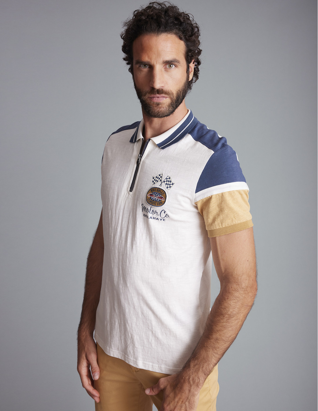 Le polo LEMOOREA séduit par son jeu de couleurs contrastées et ses broderies inspirées de l'univers automobile pour un style sport chic affirmé.