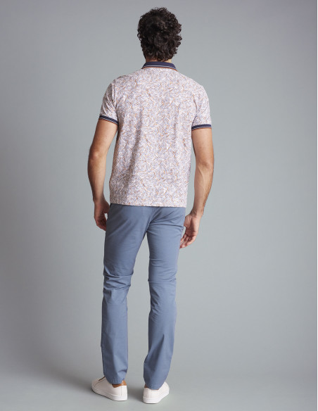 La polo LEMARINE è un capo estivo fresco e vivace. La stampa a foglie le conferisce un look dinamico e moderno, mentre le finiture a contrasto sul colletto e sulle maniche aggiungono un tocco di eleganza. Disponibile nei colori Salvia e Paprika. Il modello indossa una taglia L.